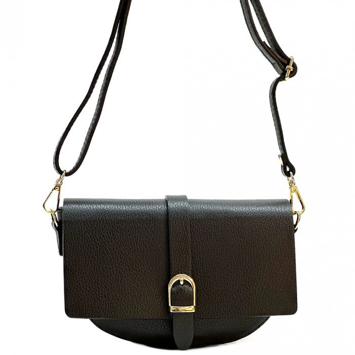 Elegant, timeless, and beautifully structured, Florina is crafted from full-grain Italian leather with a refined pebbled finish that enhances its soft yet sturdy silhouette. The curved base and smooth flap design give it a sophisticated profile, highlighted by a decorative gold-tone buckle that adds a classic Italian touch. A combination of magnetic and zip closures ensures your essentials remain secure throughout the day.