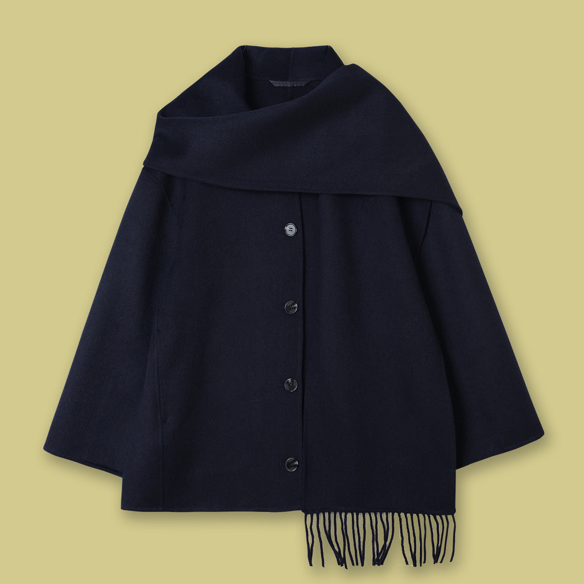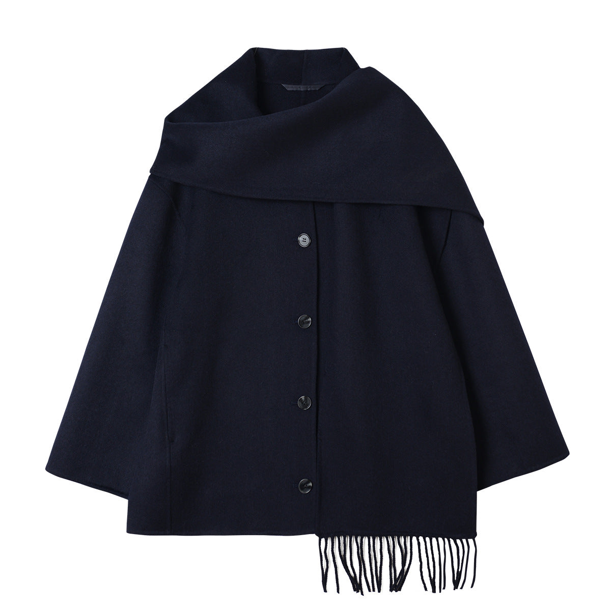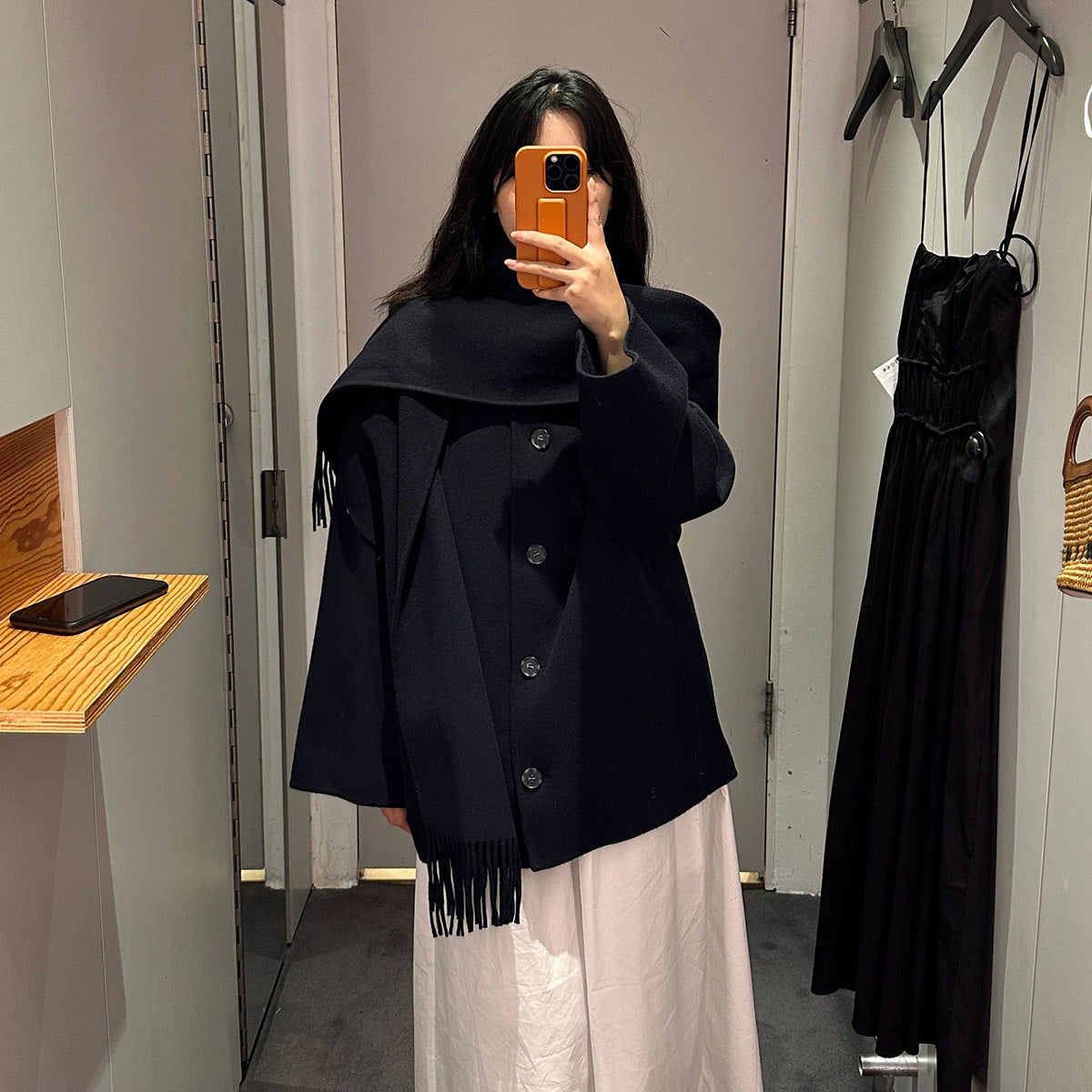 Double Sided Blended Wool Cotton Coat Tassel Scarf Collar