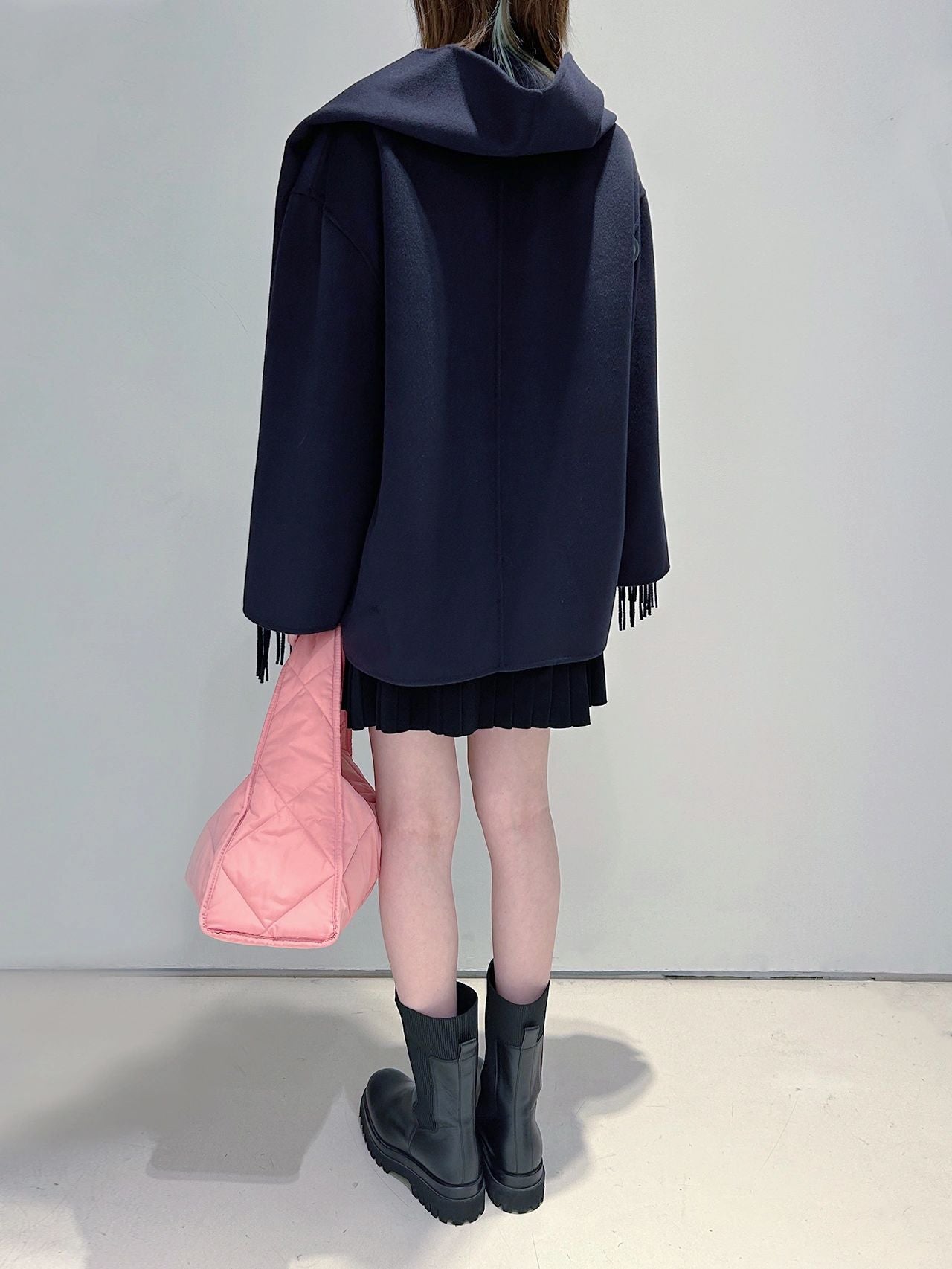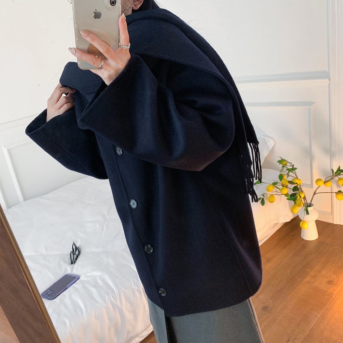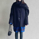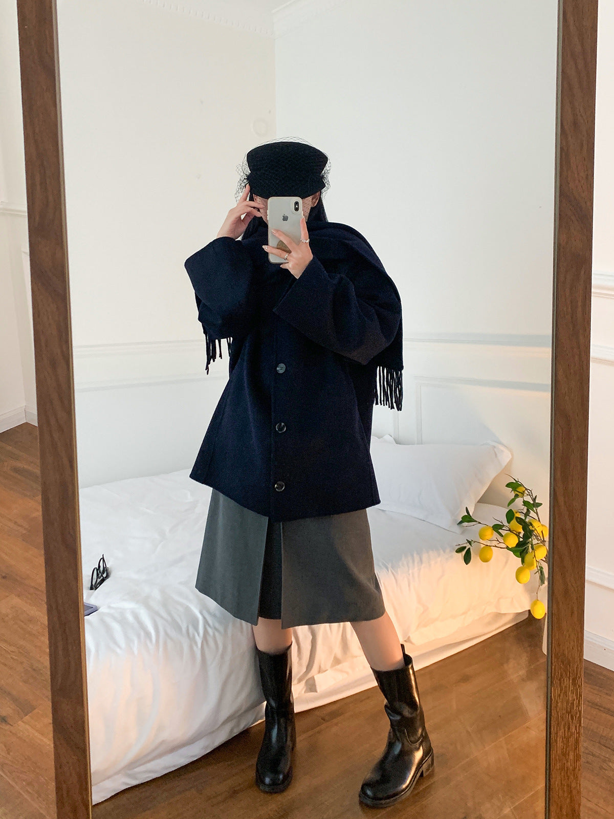 Double Sided Blended Wool Cotton Coat Tassel Scarf Collar