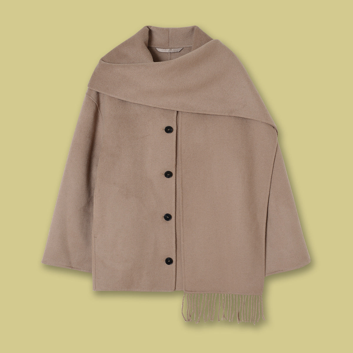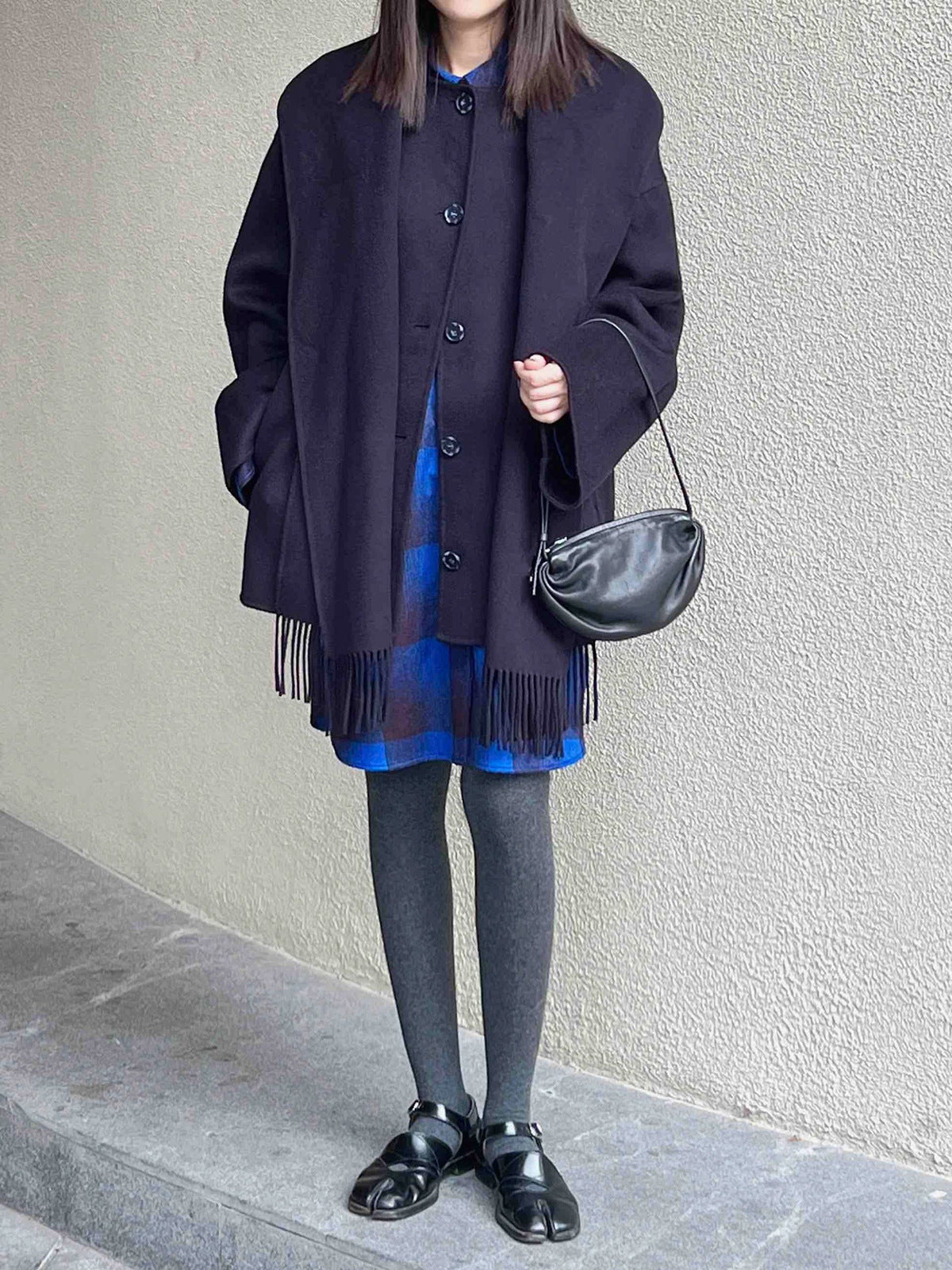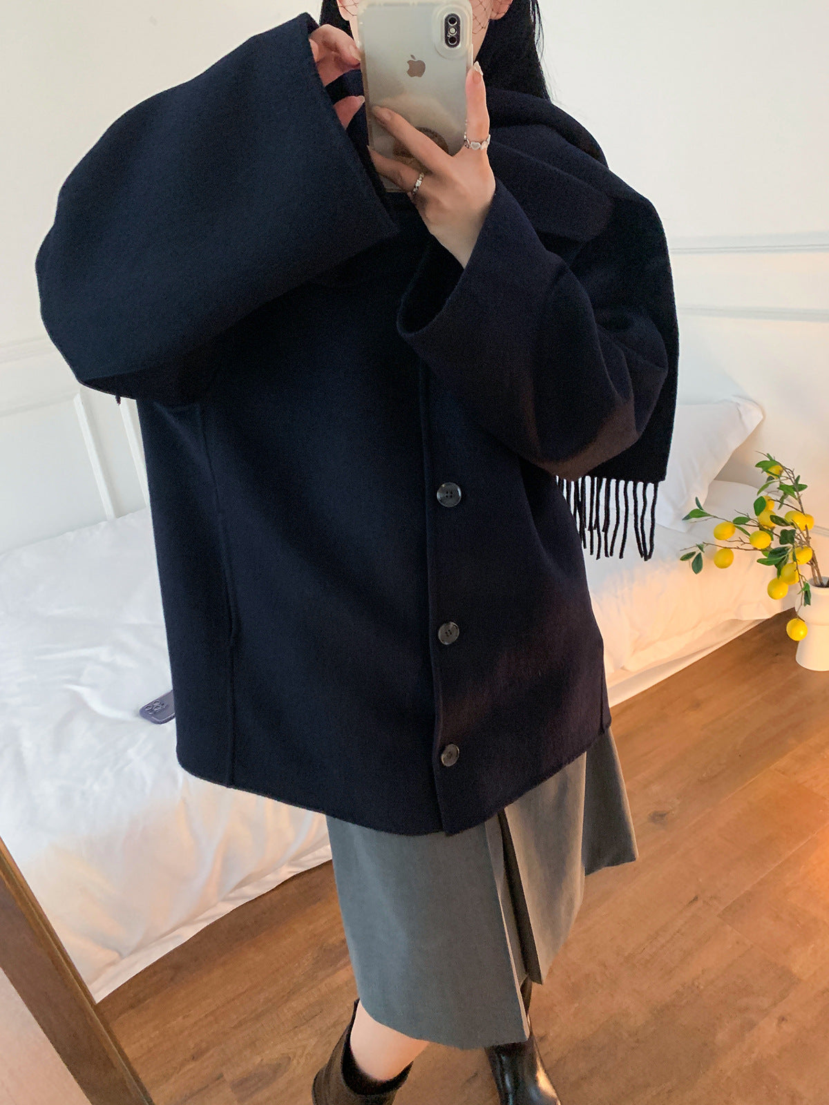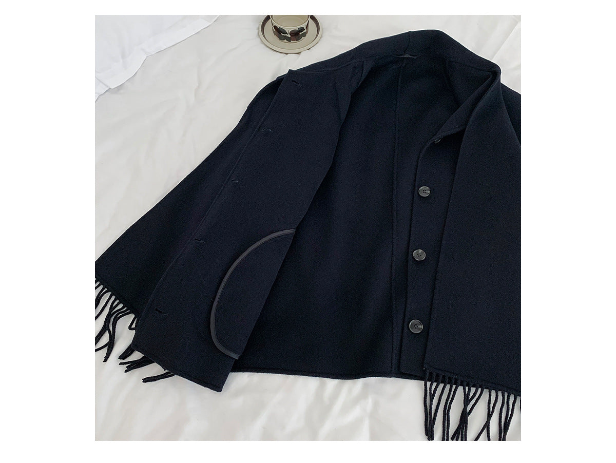 Style: Double Sided Blended Wool Cotton Wrap Coat Tassel Scarf Coat