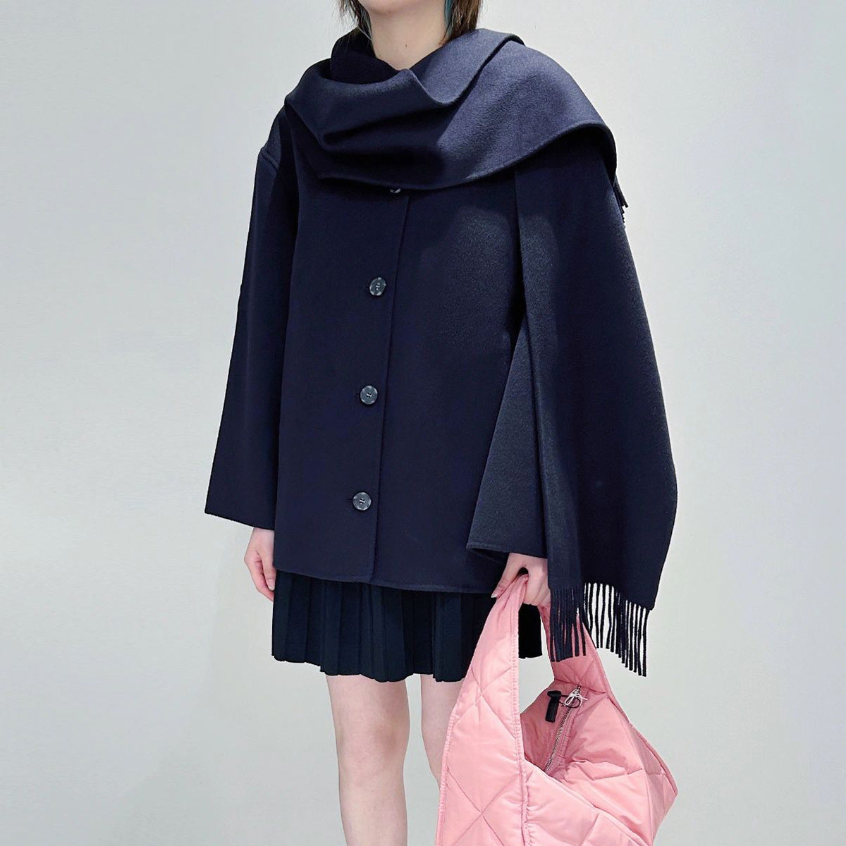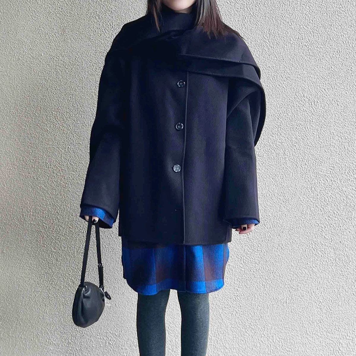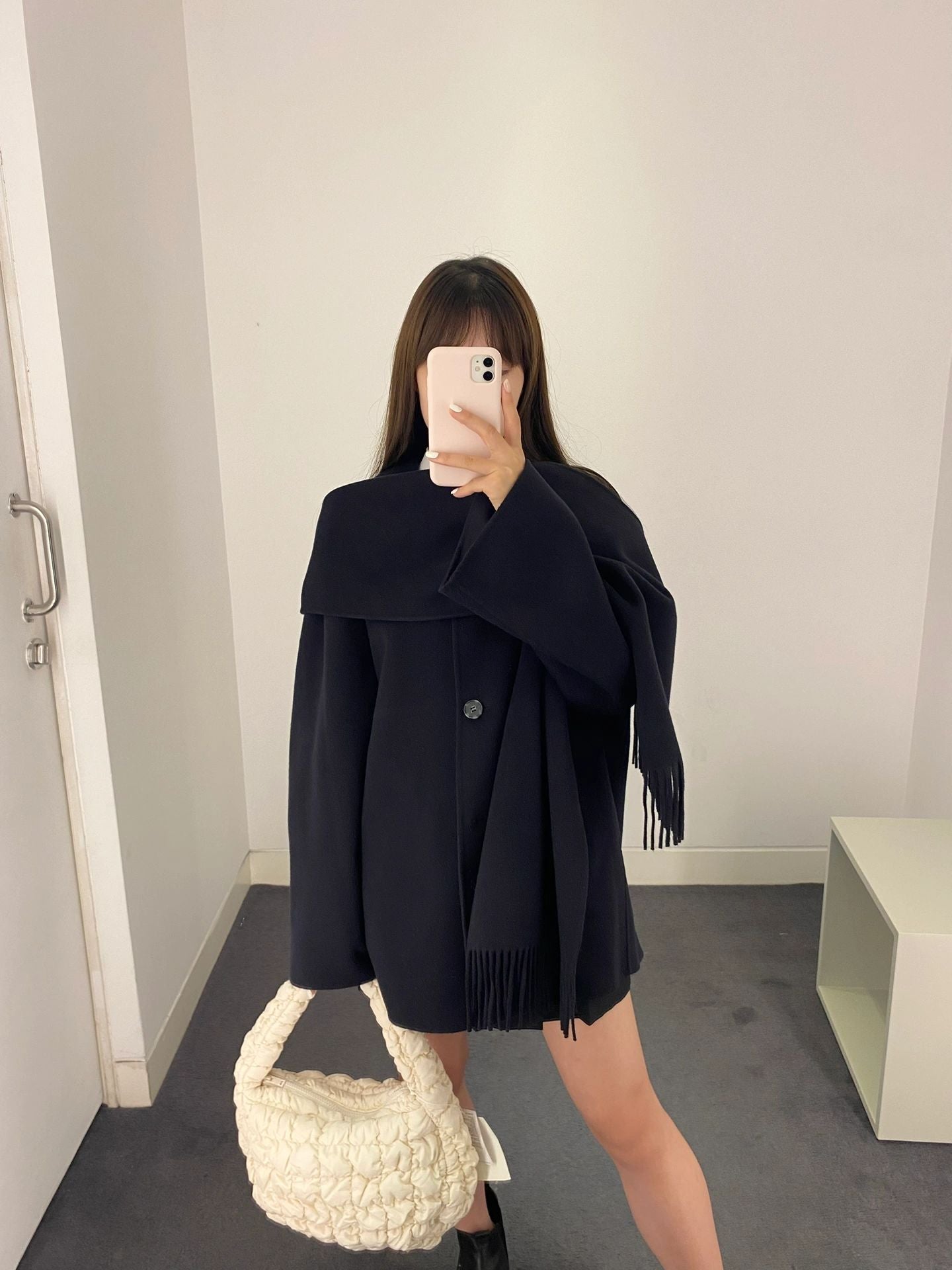 Style: Double Sided Blended Wool Cotton Wrap Coat Tassel Scarf Coat