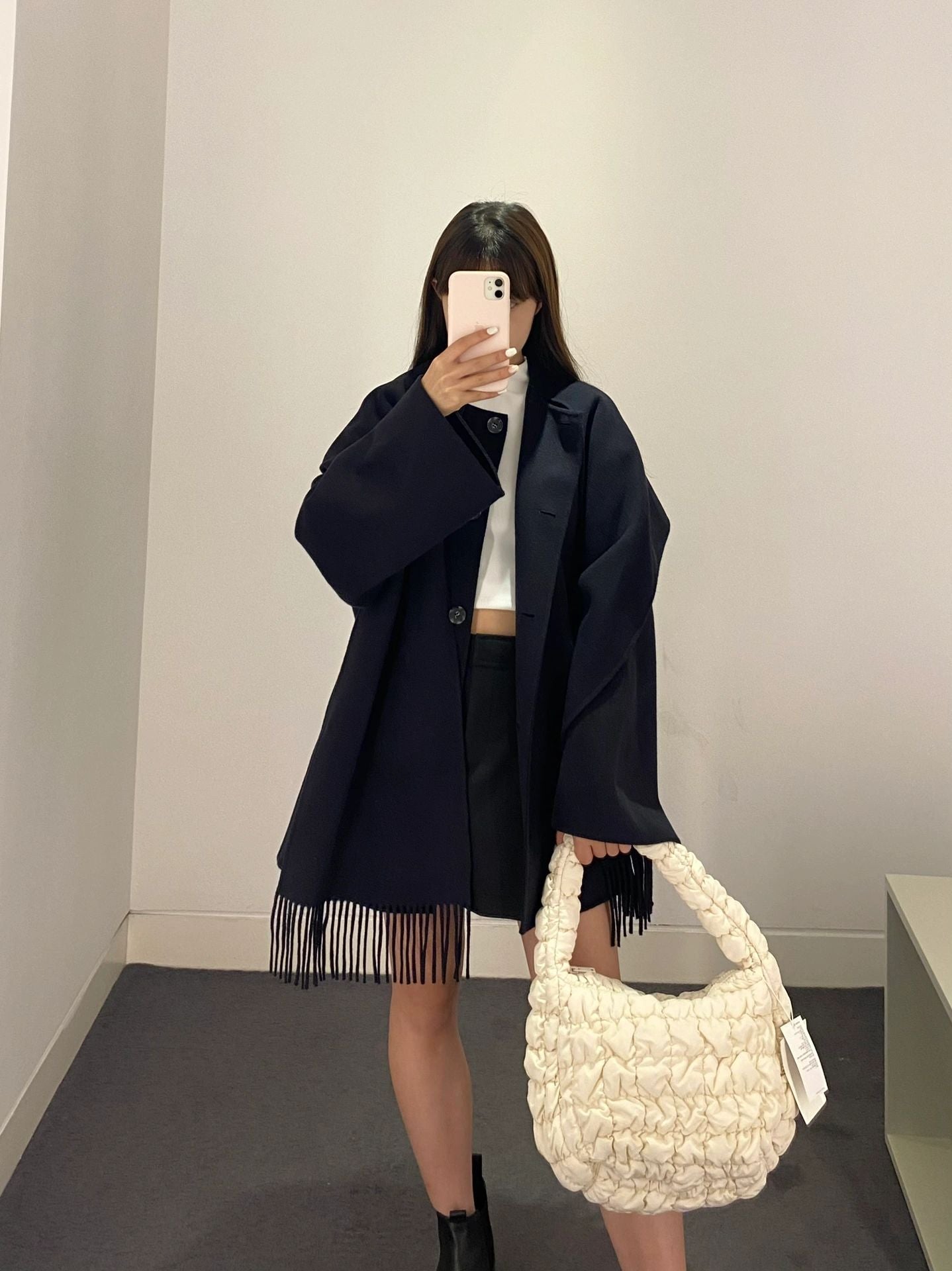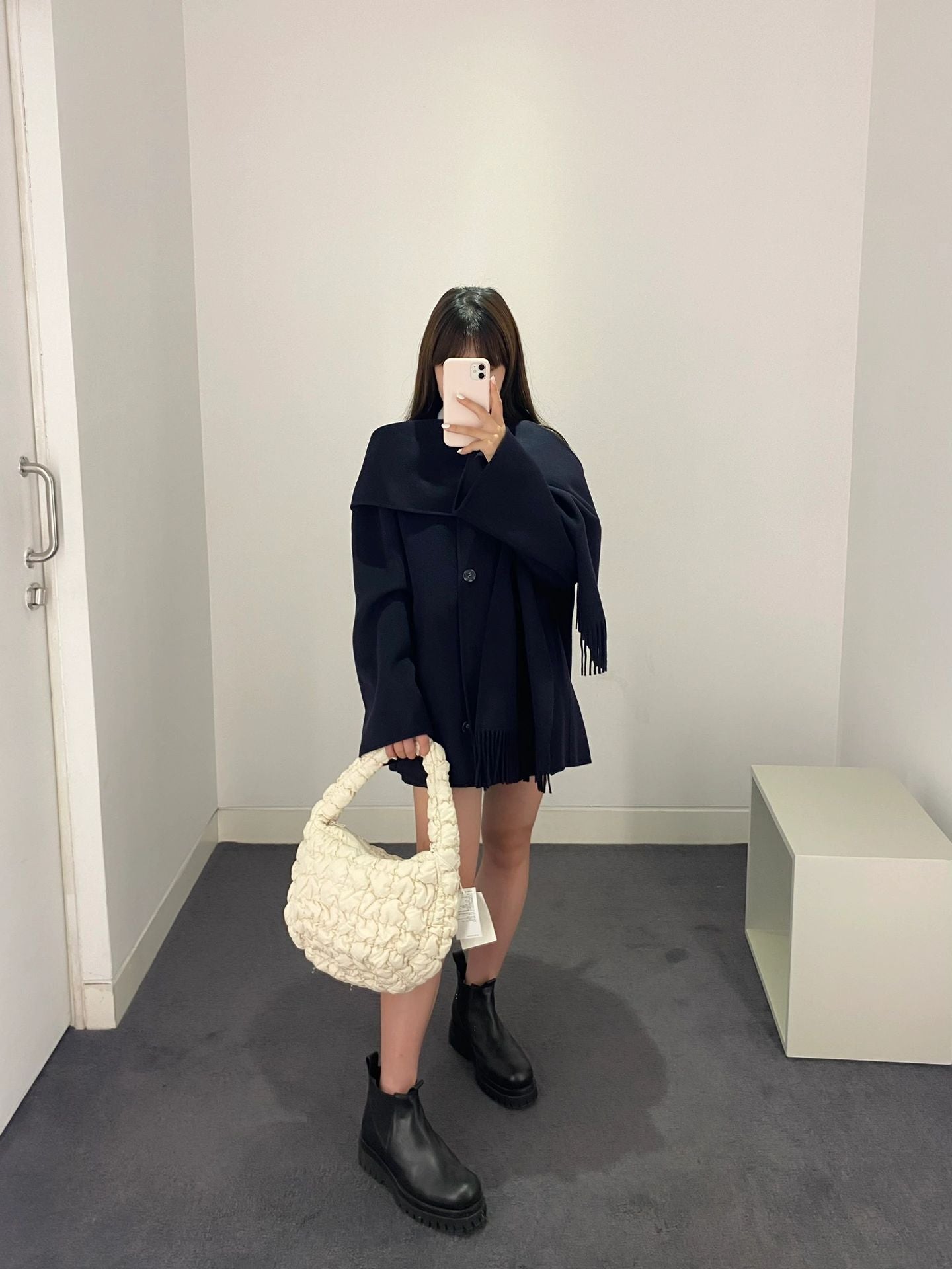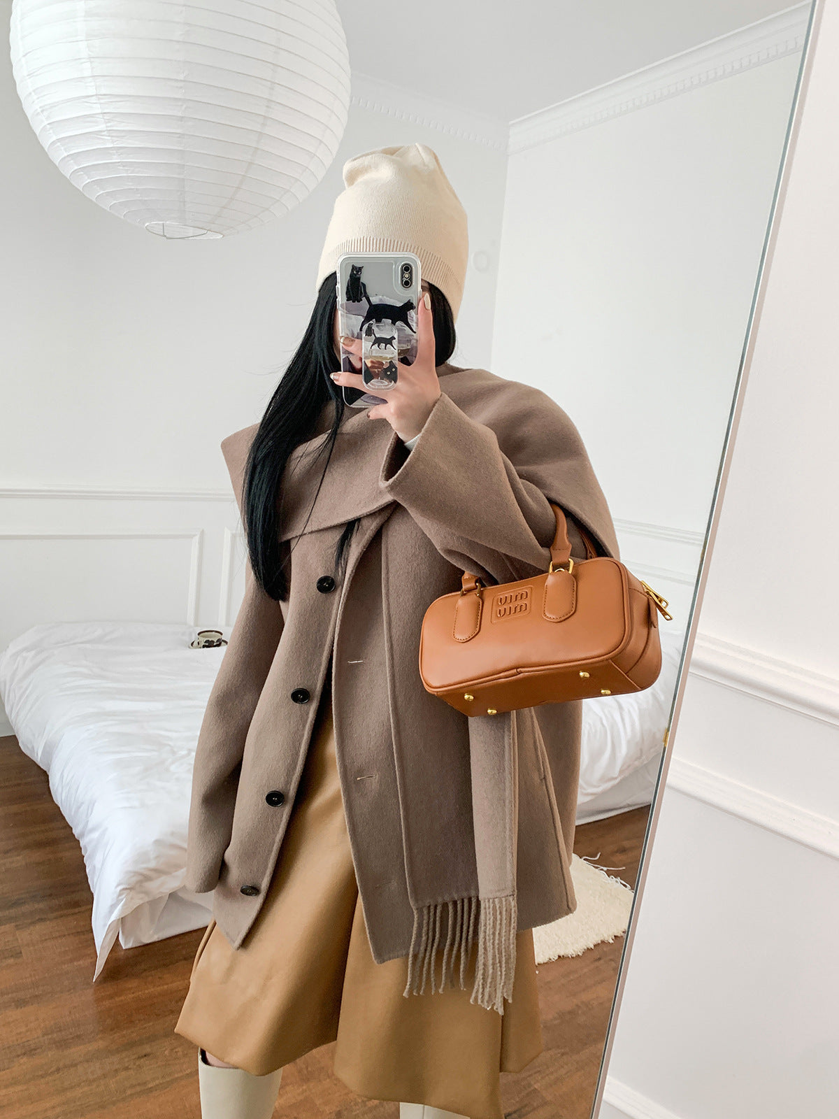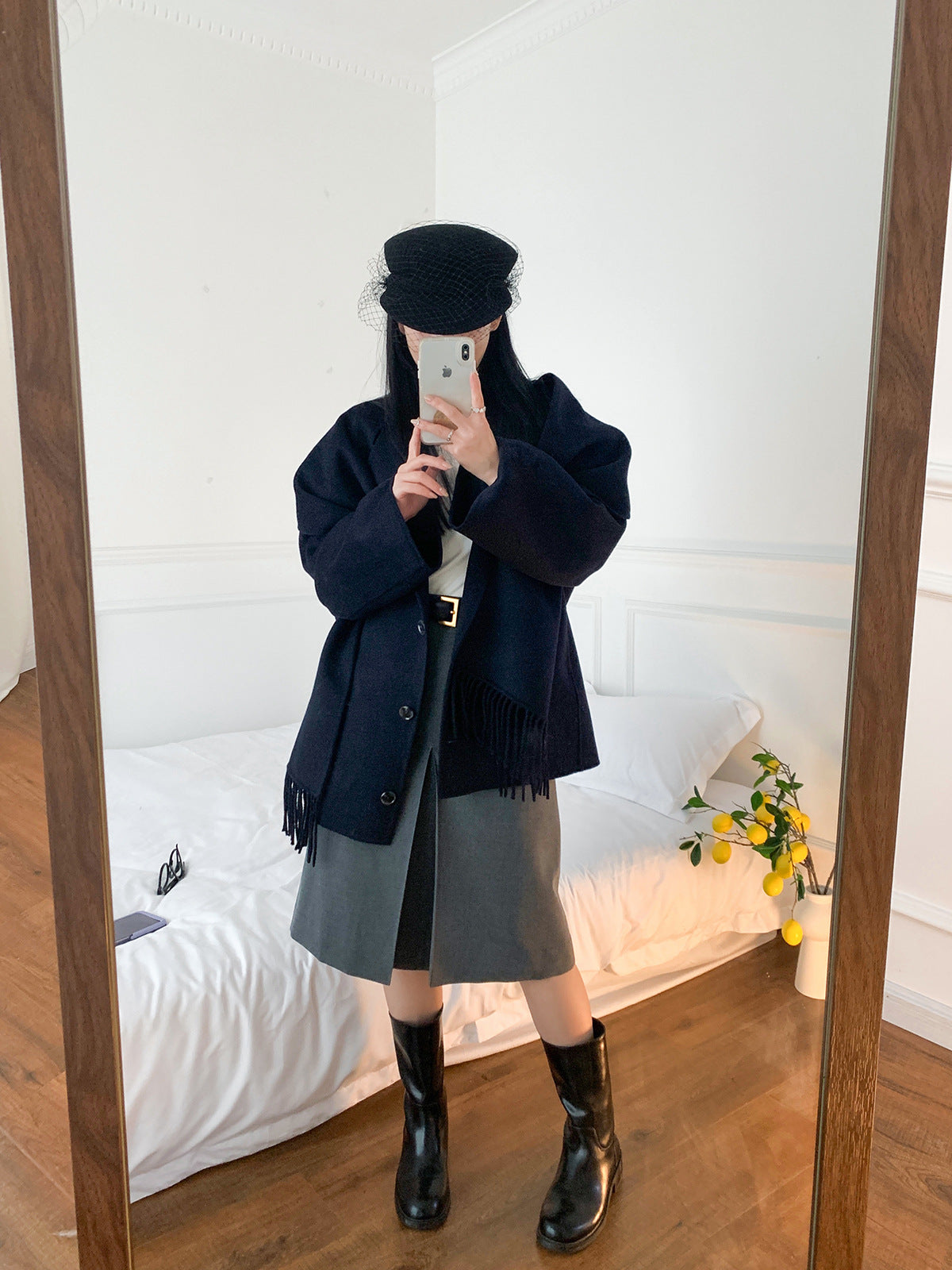 Style: Double Sided Blended Wool Cotton Wrap Coat Tassel Scarf Coat