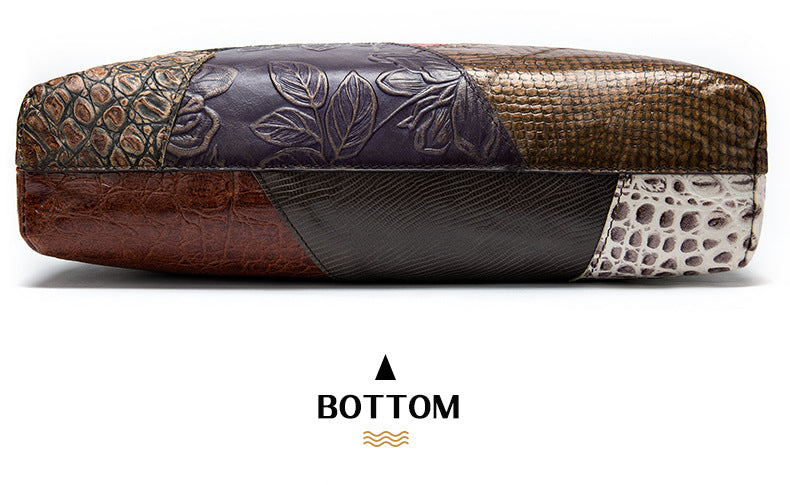Aubrey Patchwork Leather Laptop Bag – Women’s Retro Geometric Handbag