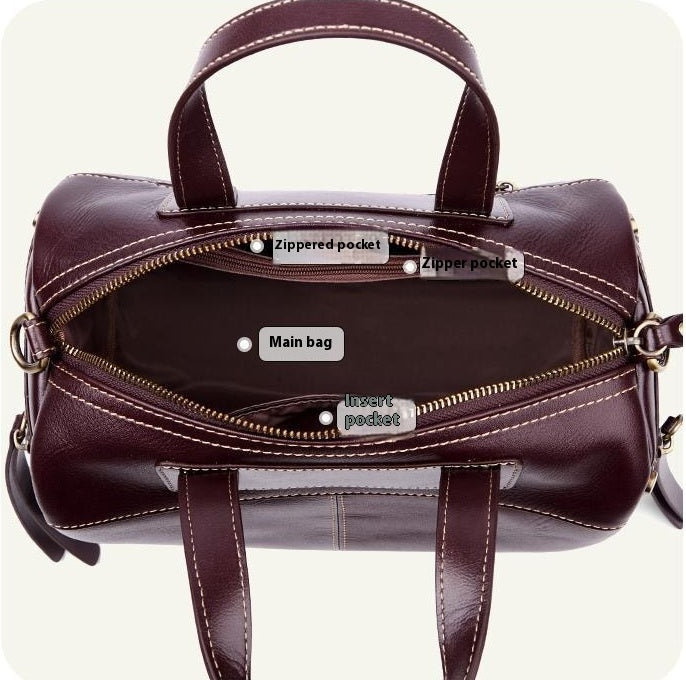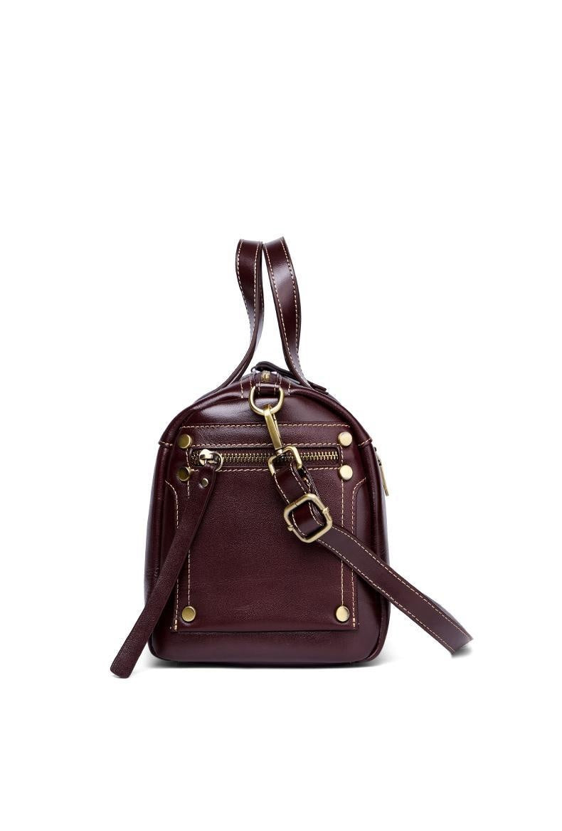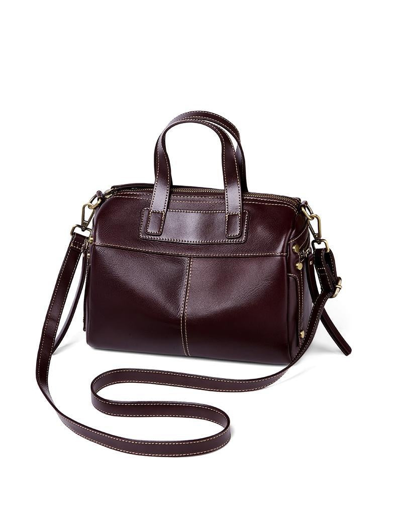 Alessia Genuine Leather Crossbody – Women’s Top Handle Bag with Ecru Stitch Detail