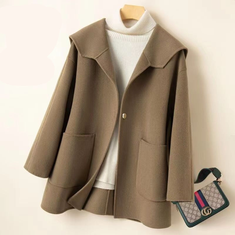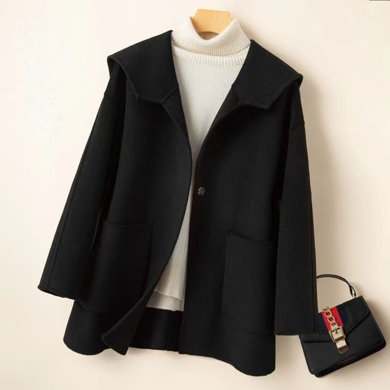 Style: Sailor Collar Loose Reversible Cashmere Coat